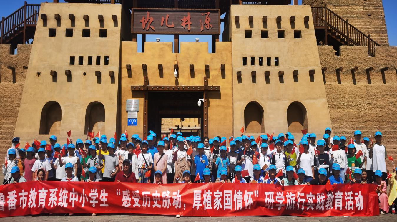 为全面落实立德树人根本任务,完整准确贯彻新时代党的治疆方略,深入开展文化润疆,铸牢中华民族共同体意识,推动广大中小学生在研学中领略祖国大好河山,感受厚重的丝路历史文化,体验民间非遗文化,7月17日-18日,吐鲁番市教育局组织全市120名中小学生前往交河故城、吐鲁番博物馆、葡萄沟、努尔丁红色记忆收藏馆等9所吐鲁番爱国主义教育基地、红色教育基地开展为期2天的“感受历史脉动,厚植家国情怀”研学实践教育活动,着力加强全市师生的革命传统教育、爱国主义教育、思想道德教育,传承红色基因,赓续红色血脉。