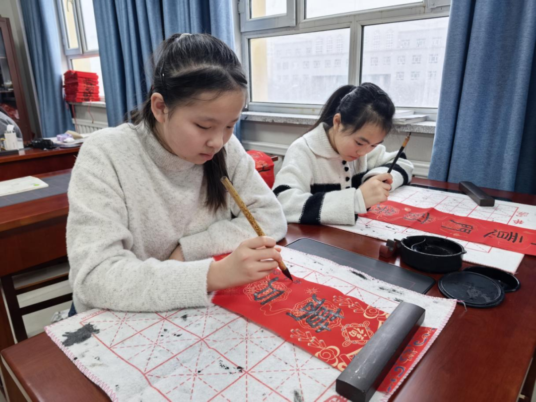 构建系统化课程体系,实现书法教育普及与特色双提升。立足全学段需求,以华文版《书法》教材为核心,搭建阶梯式、规范化课程体系,实现书法教育从“零散开展”向“系统实施”转变。部分小学1—2年级试点开课,每周1节,聚焦坐姿、执笔姿势与基础笔画启蒙;3—6年级纳入必修课程,每周1—2节书法课,巩固书写技能;初中利用课后托管增设书法练习环节,侧重字体结构与作品创作,形成“启蒙—巩固—提升”全学段覆盖。同时推行“课程+社团+活动”模式,博乐市第三中学设每日15分钟“习字时光”,博乐市小营盘中心小学党支部书记担任本校五年级书法授课教师,阿拉山口市中学书法社团依托课后托管时间每周开展2次专项指导,温泉县安格里格中心小学借助线上平台,邀请中国美术学院教师每周三开展乡村书法公益课,实现普及与特色双提升。