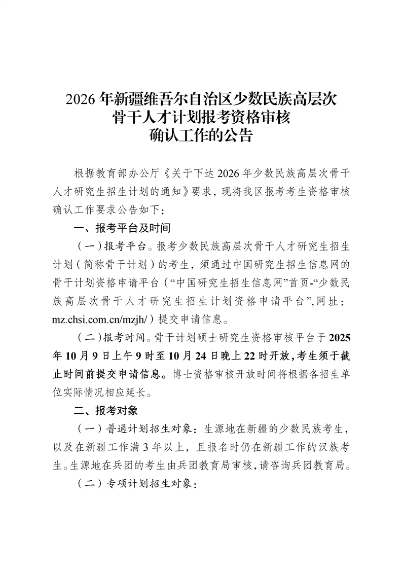 2026年新疆维吾尔自治区少数民族高层次骨干人才计划报考资格审核确认工作的公告