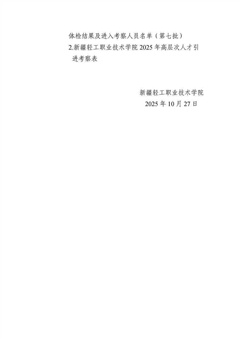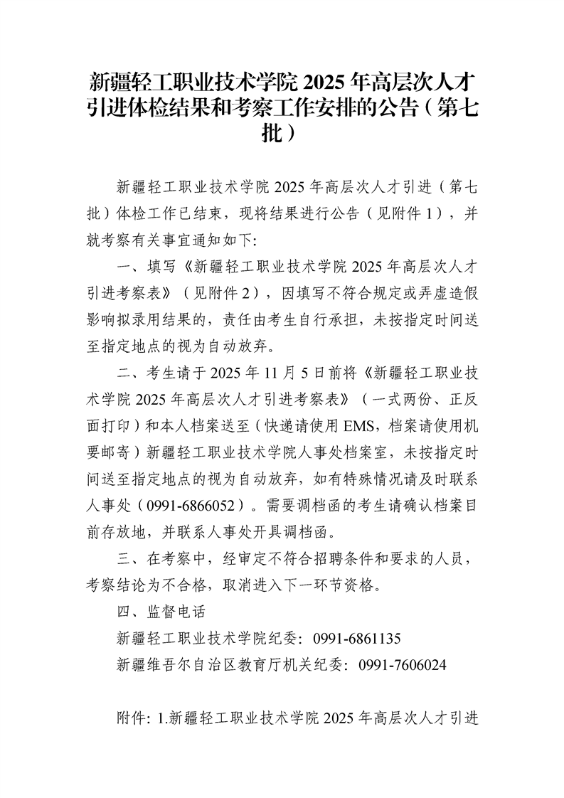 新疆轻工职业技术学院2025年高层次人才引进体检结果和考察工作安排的公告(第七批)