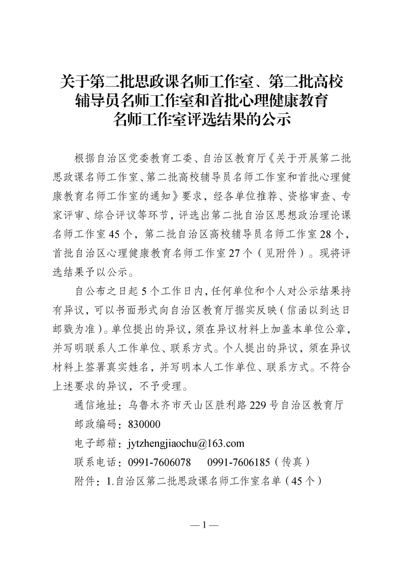关于第二批思政课名师工作室、第二批高校辅导员名师工作室和首批心理健康教育名师工作室评选结果的公示
