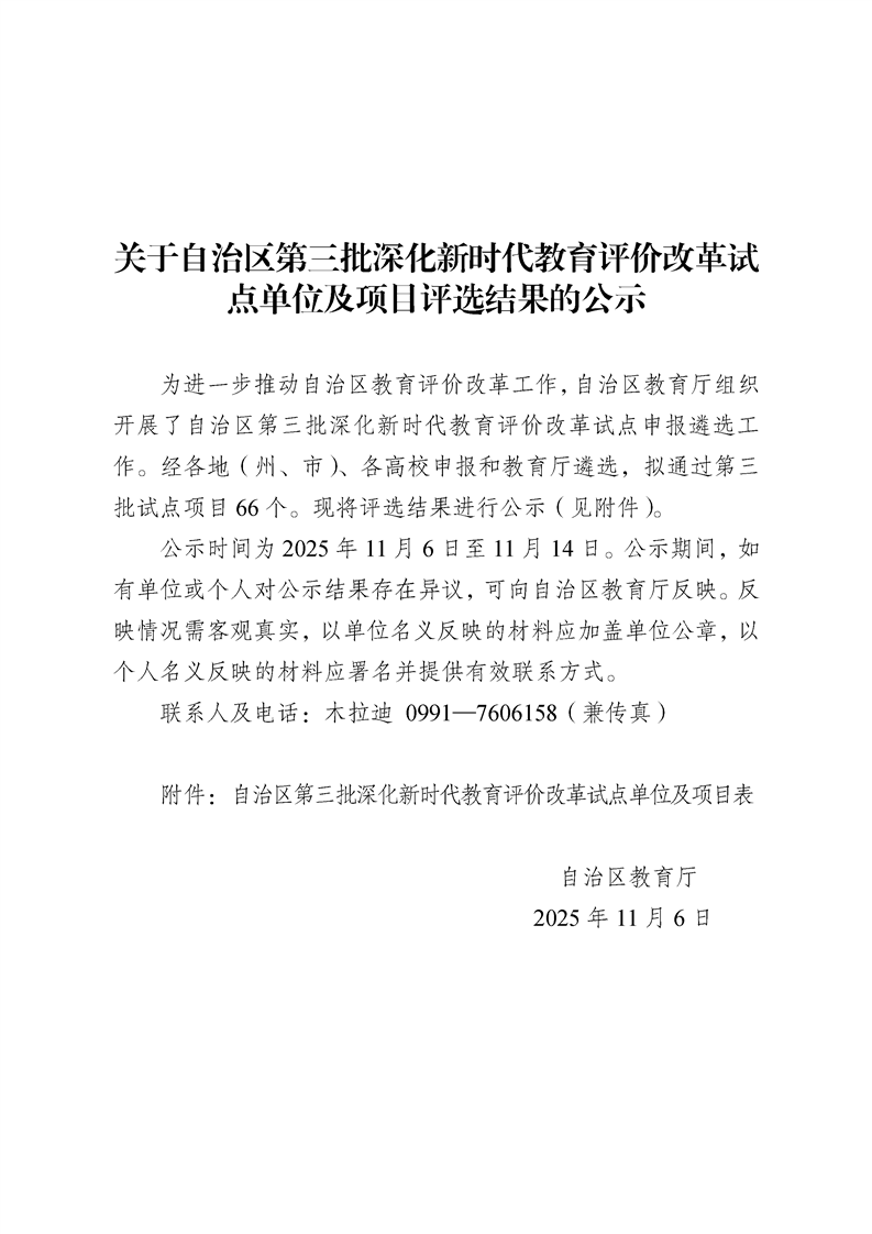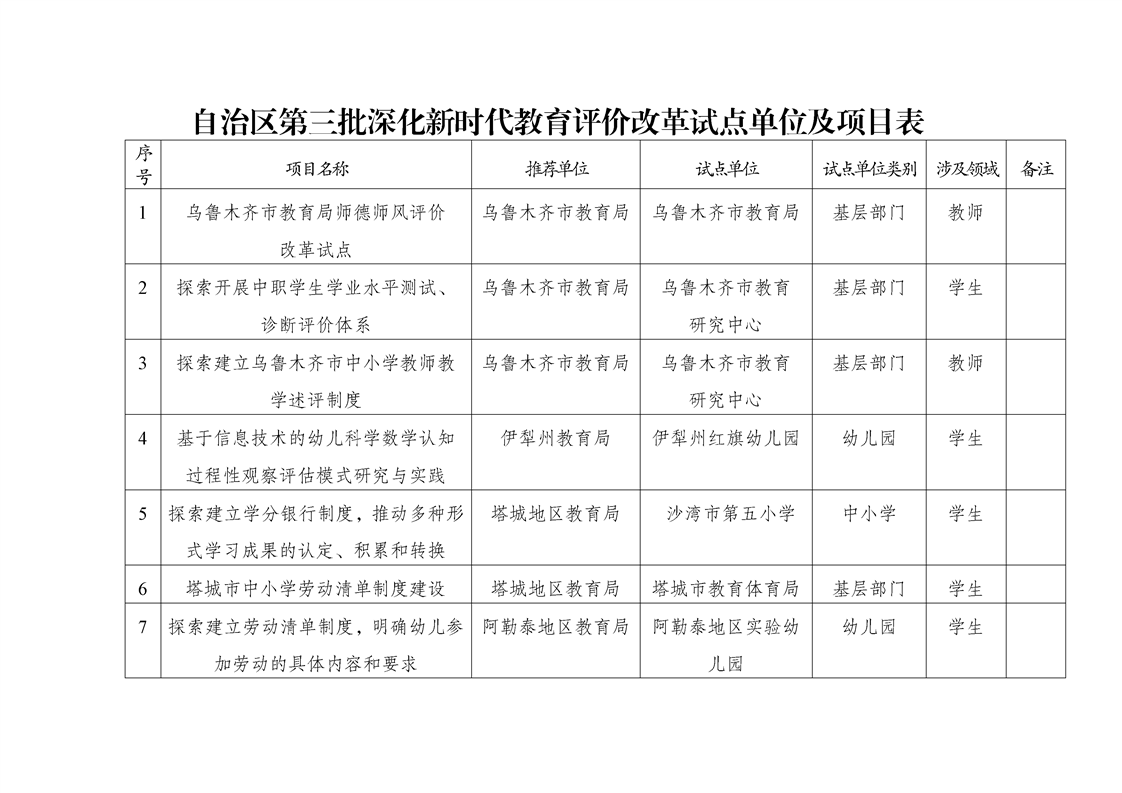 关于自治区第三批深化新时代教育评价改革试点单位及项目评选结果的公示