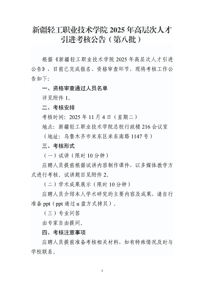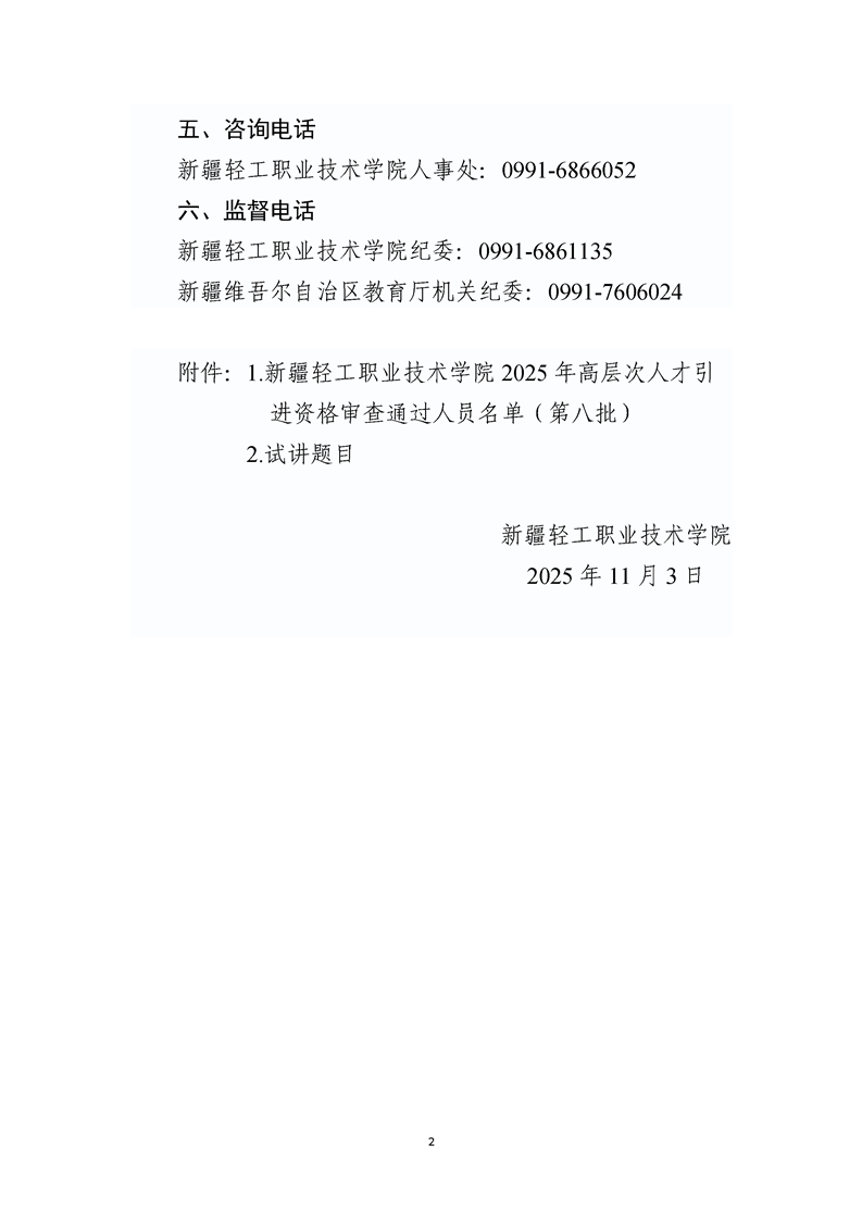 新疆轻工职业技术学院2025年高层次人才引进考核公告(第八批)