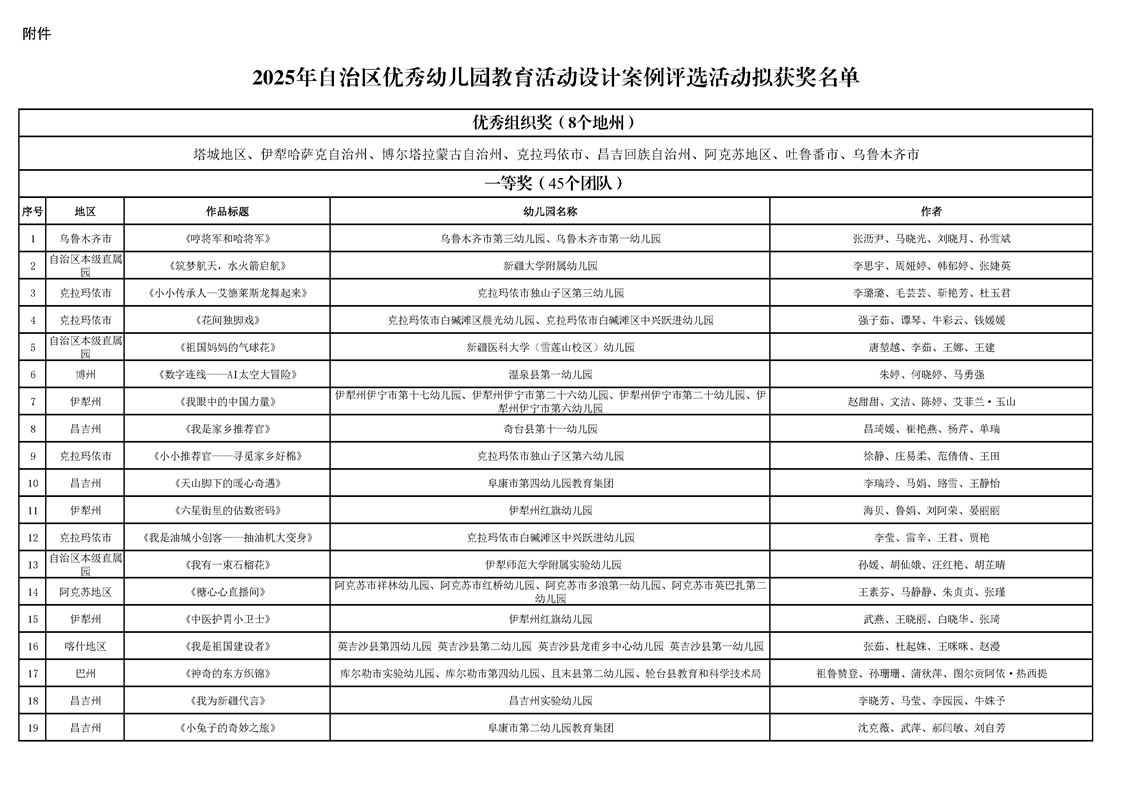 关于2025年自治区优秀幼儿园教育活动设计案例评选活动拟获奖名单的公示