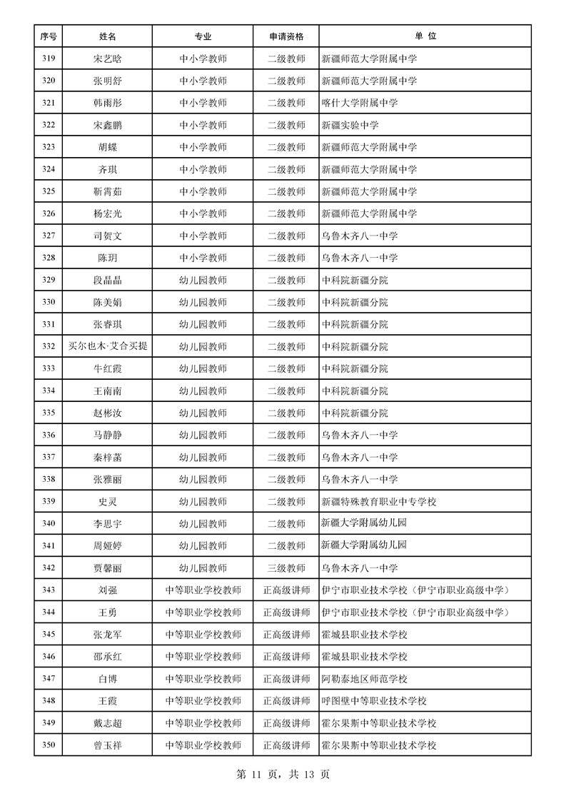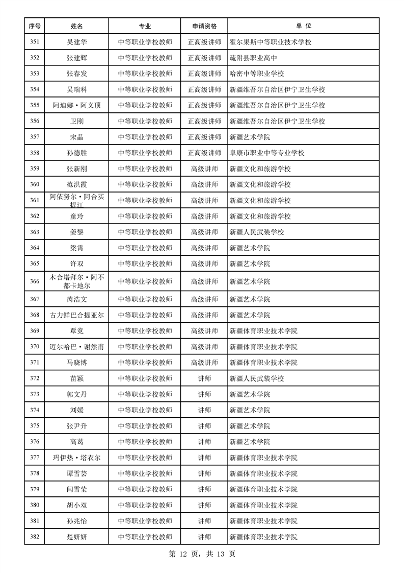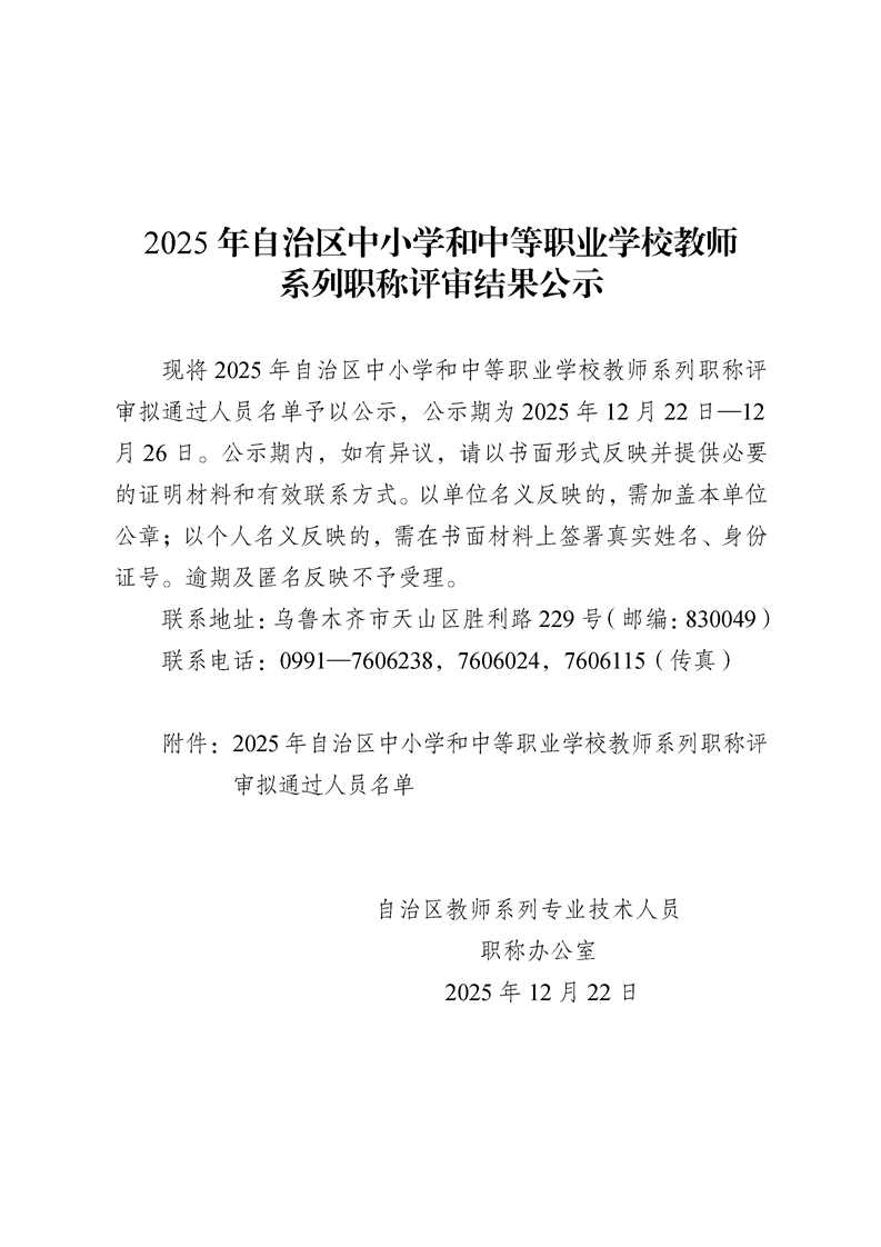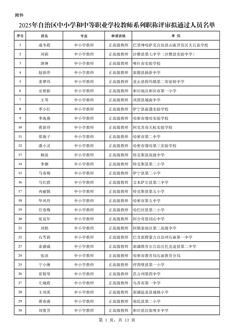 2025年自治区中小学和中等职业学校教师系列职称评审结果公示