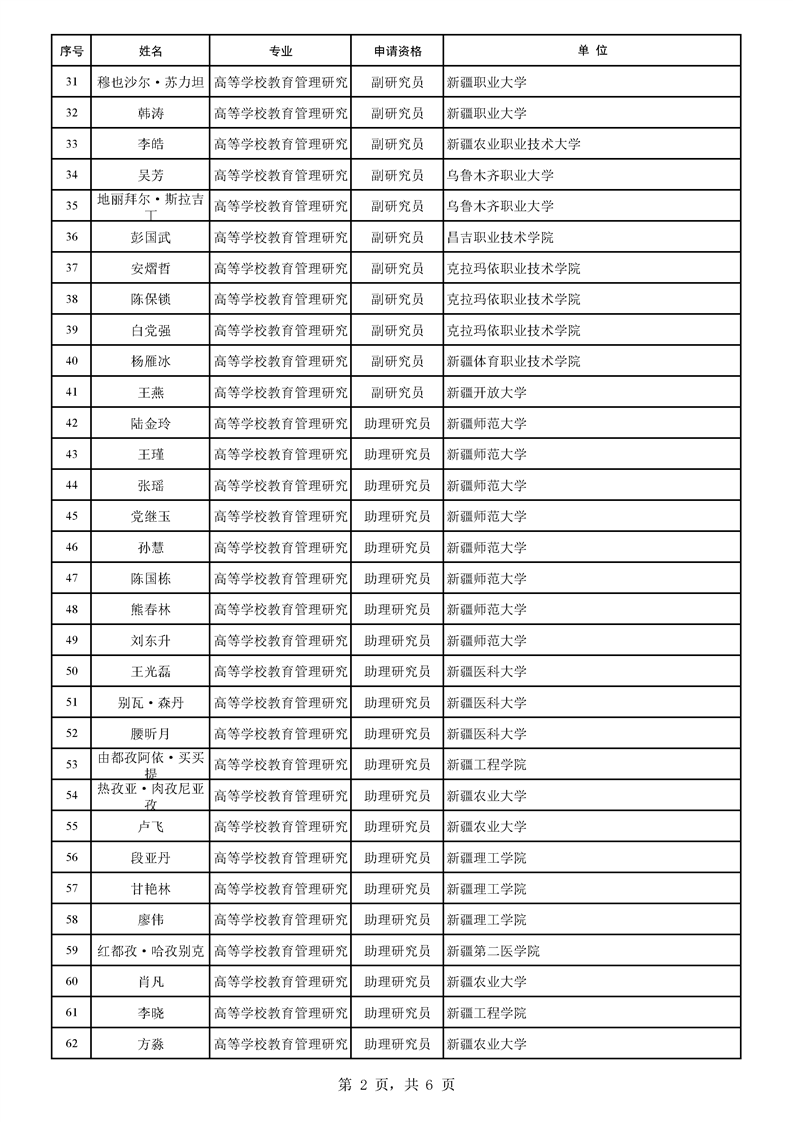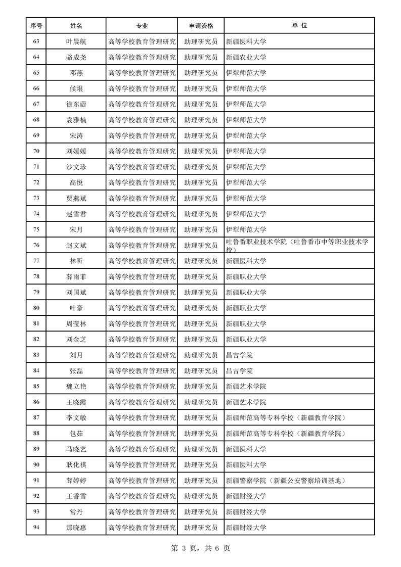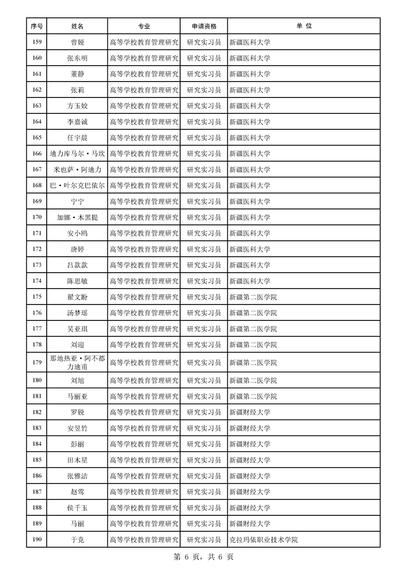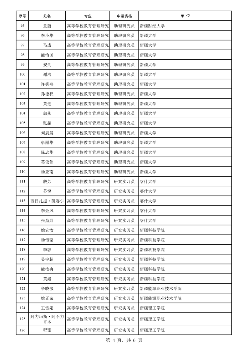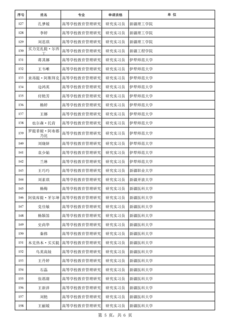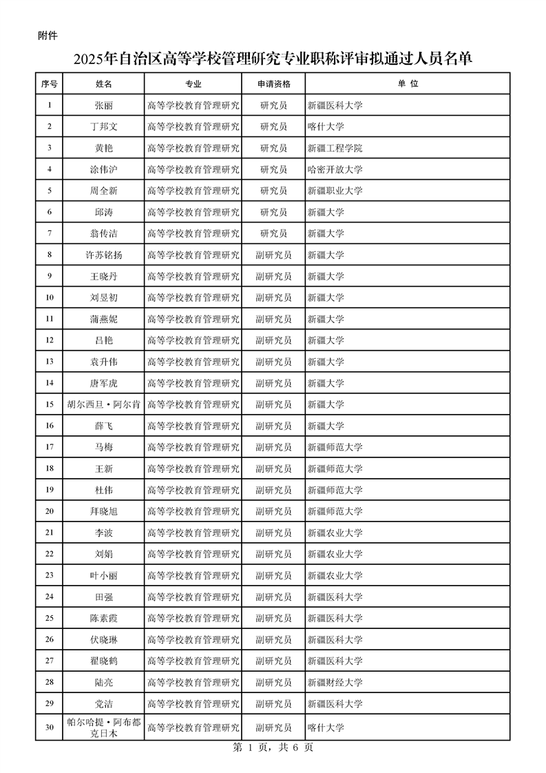 2025年自治区高等学校教育管理研究专业职称评审结果公示