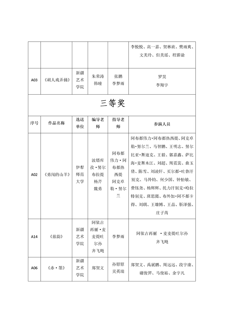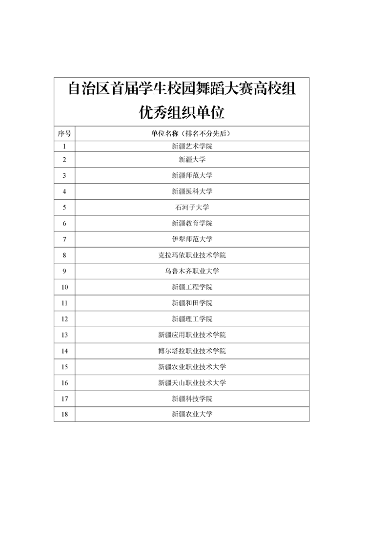 关于自治区首届学生校园舞蹈大赛高校组获奖名单的公示