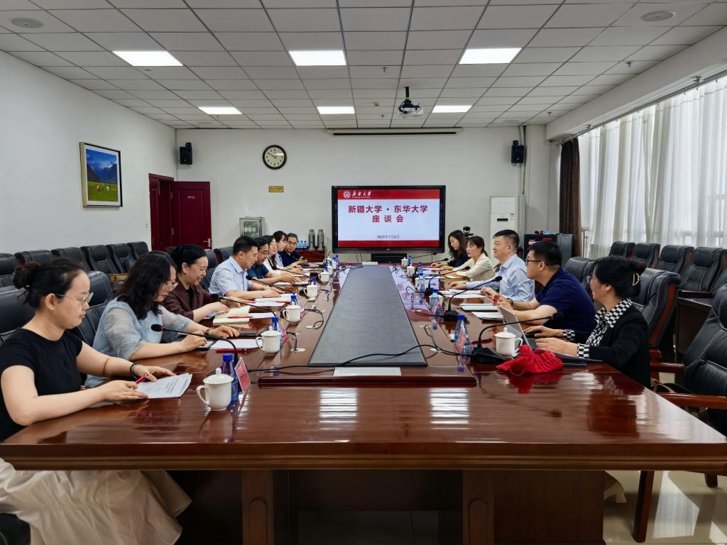 7月6日上午,东华大学党委常委、副校长,国家语言文字推广基地(东华大学)主任陈革一行5人就国家通用语言文字推广工作赴我校调研座谈。我校党委常委、副校长,国家语言文字推广基地(新疆大学)主任刘正江,中国语言文学学院、国家语言文字推广基地(新疆大学)相关负责同志参加座谈会。座谈会由我校中国语言文学学院副院长(主持行政工作)葛刚岩主持。