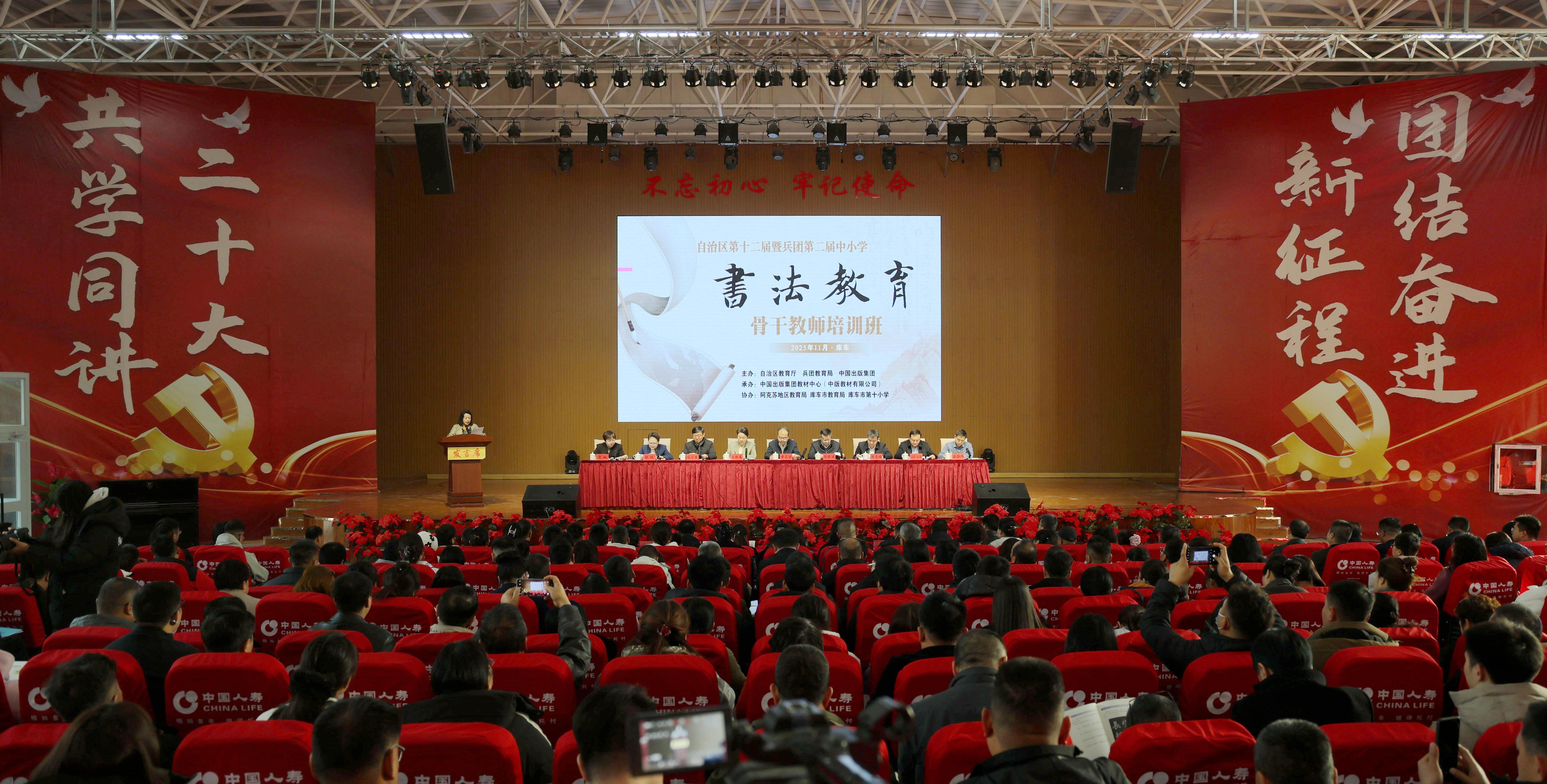 11月11日,由自治区教育厅、兵团教育局、中国出版集团联合举办的“自治区第十二届暨兵团第二届中小学书法教育骨干教师培训班”在阿克苏地区库车市开班。中国出版集团有限公司董事长、党组书记黄志坚,自治区人民政府总督学、自治区教育厅党组成员孙长波出席开班仪式并讲话。