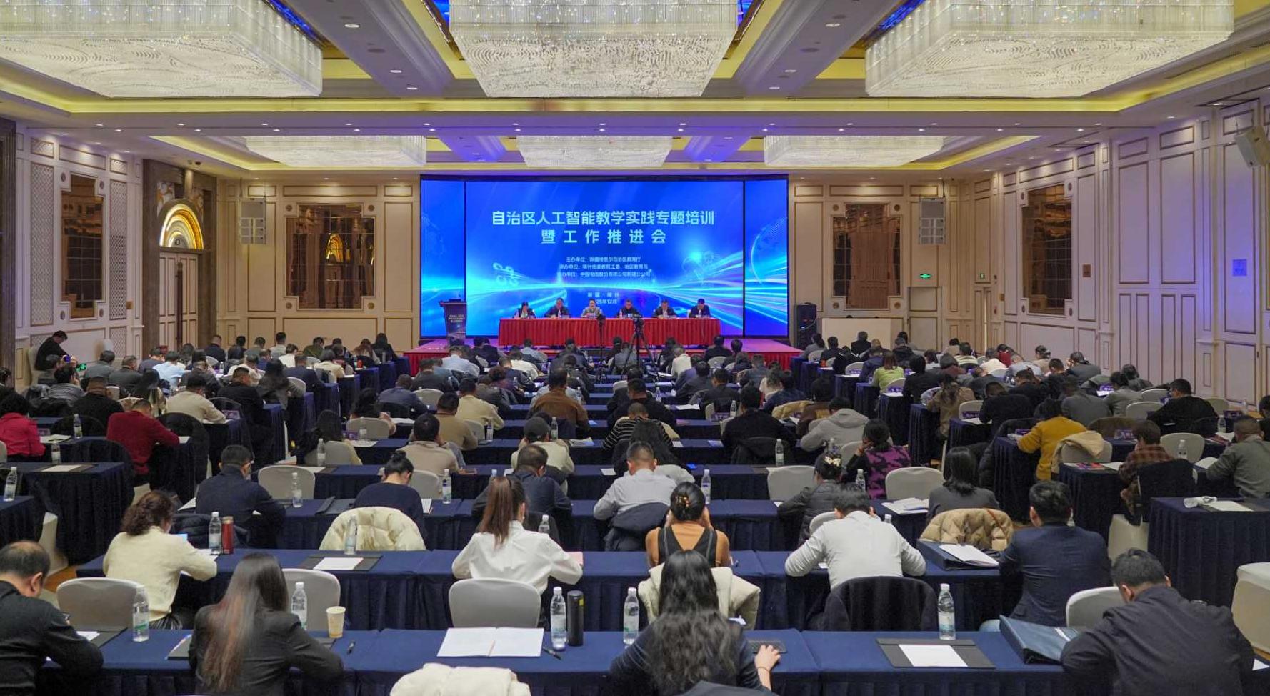 12月18日至19日,自治区中小学人工智能教学实践专题培训暨工作推进会在喀什市召开。本次培训由自治区教育厅主办,喀什地委教育工委、地区教育局承办,中国电信股份有限公司新疆分公司协办。全区14个地(州、市)教育局相关负责人、中小学校领导及骨干教师代表等119人现场参会,各地、各县市、各学校设分会场同步参训。