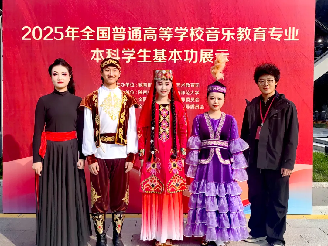 在近日由教育部举办的2025年全国普通高等学校音乐教育、美术教育专业本科学生基本功展示活动中,新疆代表队团结协作、表现出色,最终斩获8项个人与集体荣誉。同时,新疆维吾尔自治区教育厅因组织工作表现突出,荣获“优秀组织奖”。