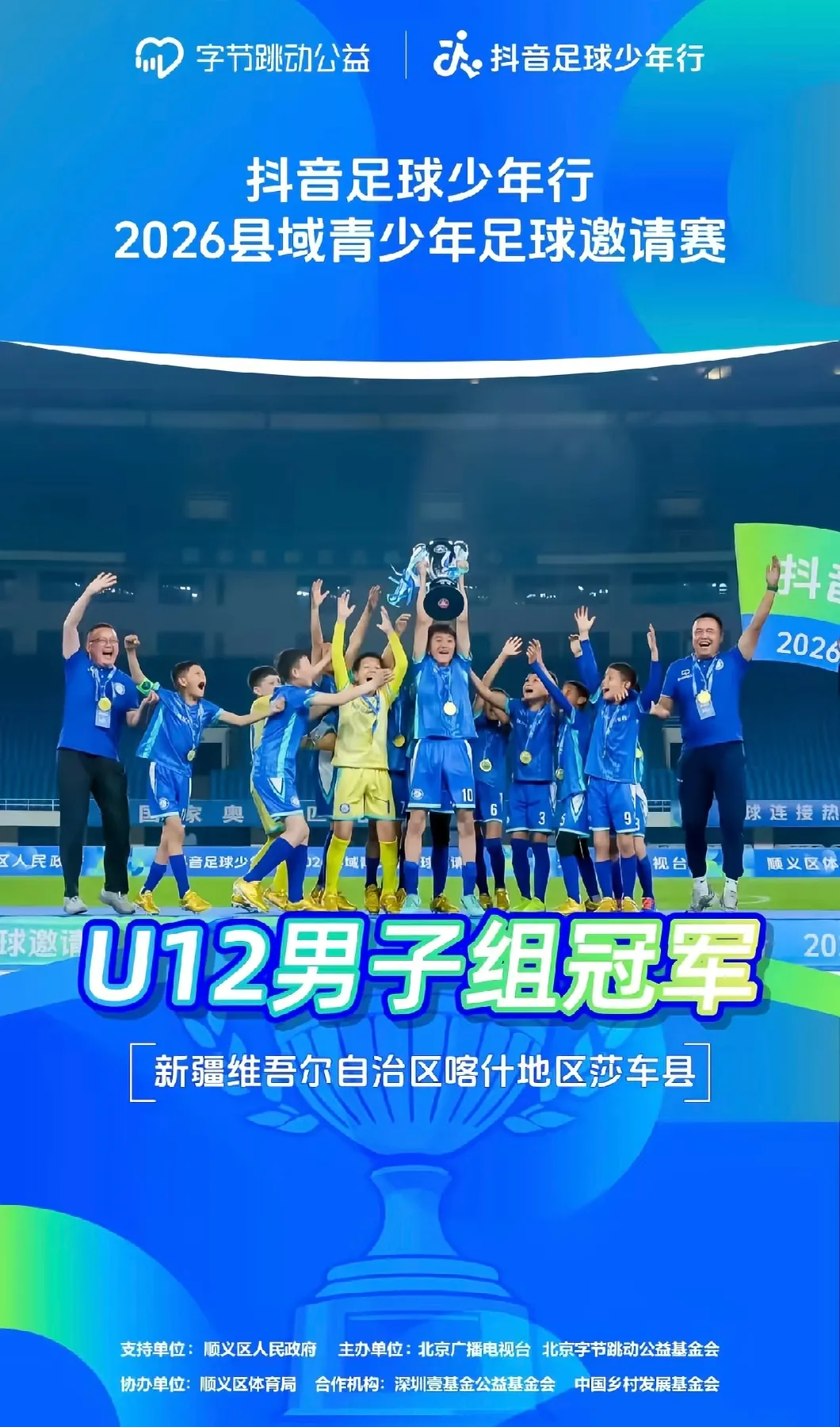 近日,“抖音足球少年行”2026县域青少年足球邀请赛在北京国家奥林匹克体育中心落幕。在男子U12组别决赛中,新疆莎车县代表队以5比0战胜同样来自新疆的伊宁县代表队,夺得冠军;伊宁县代表队获亚军。冠亚军均被新疆球队包揽,成为本次赛事最大亮点。女子组冠军由海南省琼中黎族苗族自治县代表队获得。