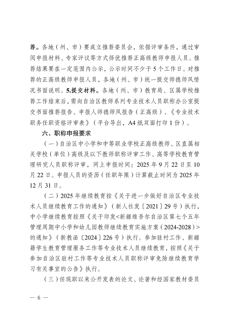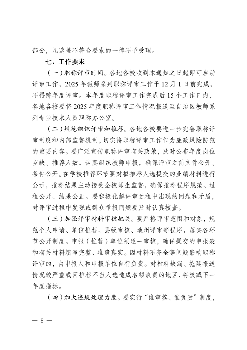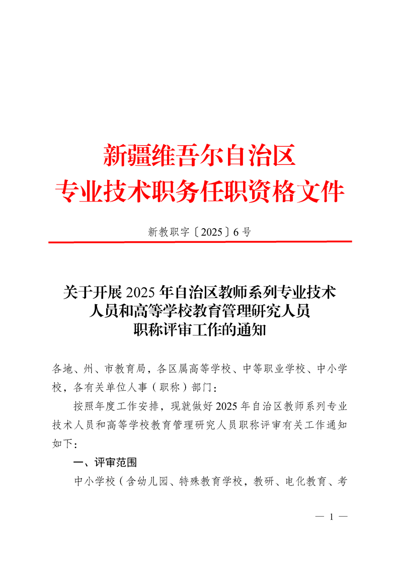 标题:关于开展2025年自治区教师系列专业技术人员和高等学校教育管理研究人员职称评审工作的通知