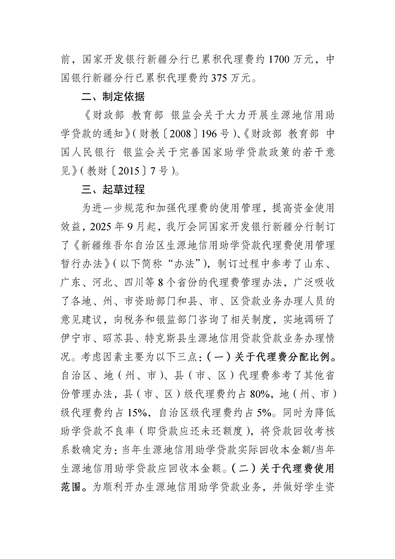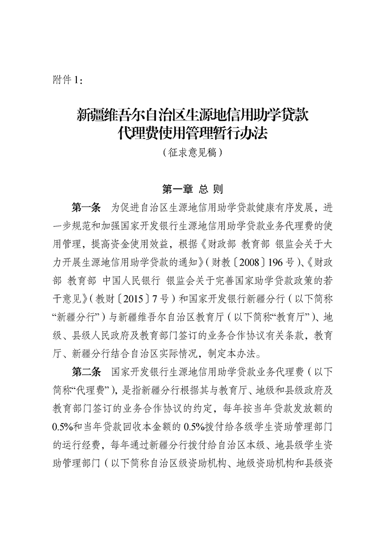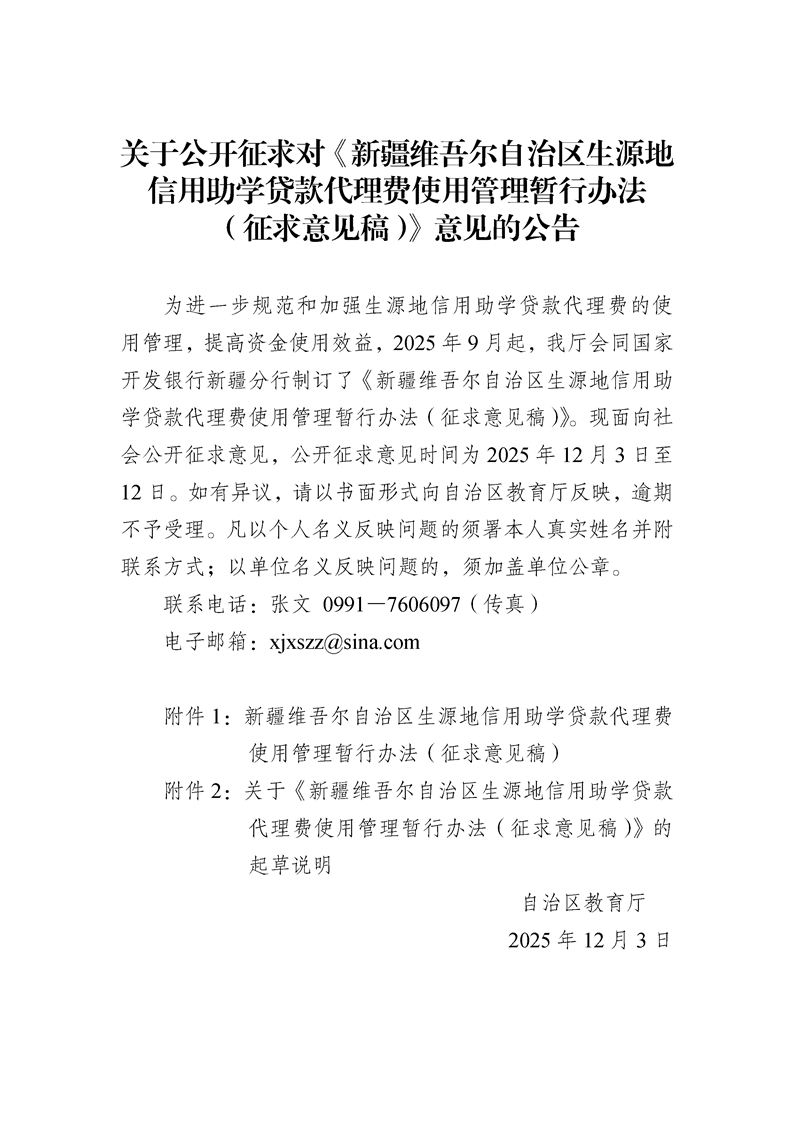 关于公开征求对《新疆维吾尔自治区生源地信用助学贷款代理费使用管理暂行办法(征求意见稿)》意见的公告