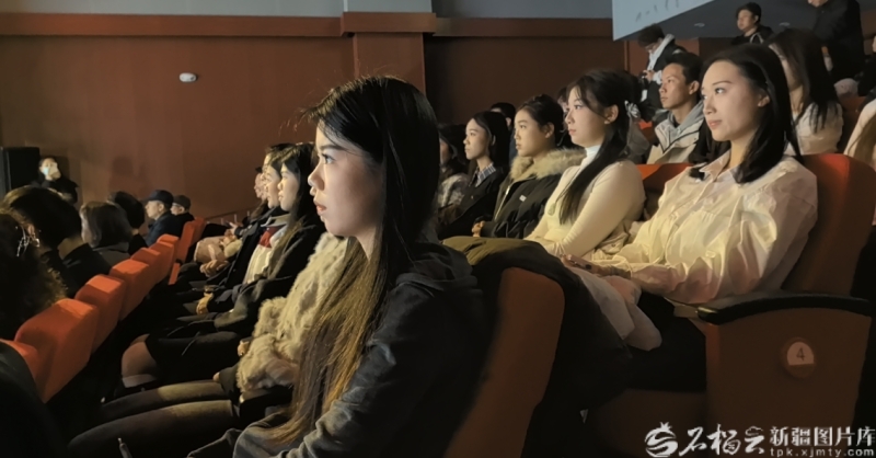 11月14日,“声动新疆”庆祝自治区成立70周年主题成就展讲解员成果汇报活动现场,学生们在观看。杨洁摄