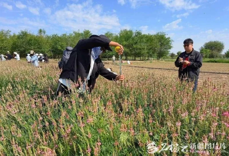 新疆农业大学学生在该校陆港校区试验田进行成果检测。新疆农业大学供图