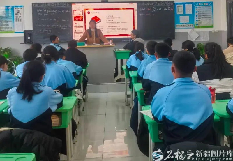 12月2日,和田市第五中学教师给学生讲解宪法知识。和田市第五中学供图