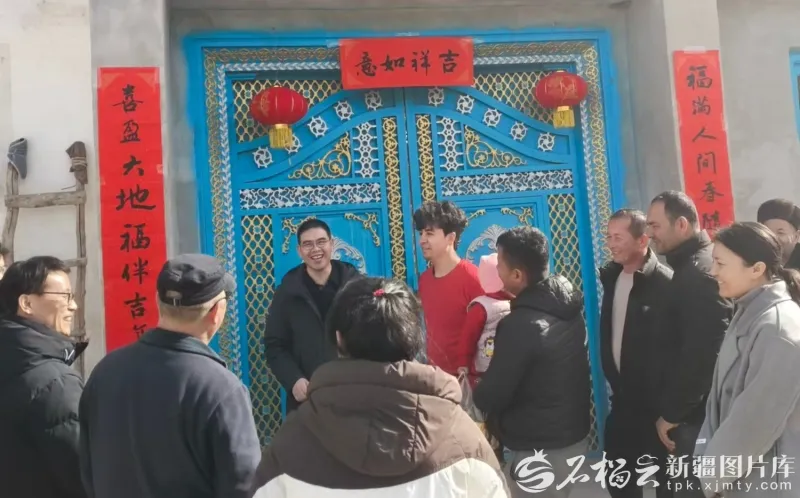 红彤彤的春联映着一张张幸福的笑脸,一声声吉祥的话语回荡在乡村的小巷里。各族群众欢聚一堂、合影留念,手捧春联,共送新春祝福,定格下一个个暖心瞬间。