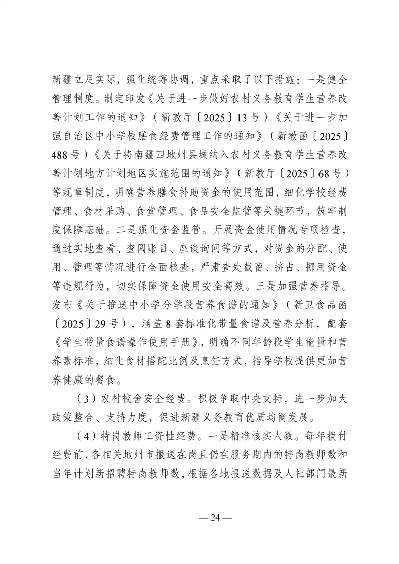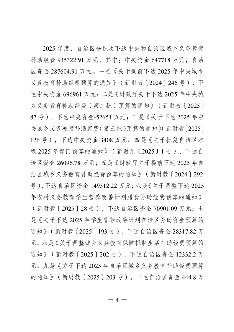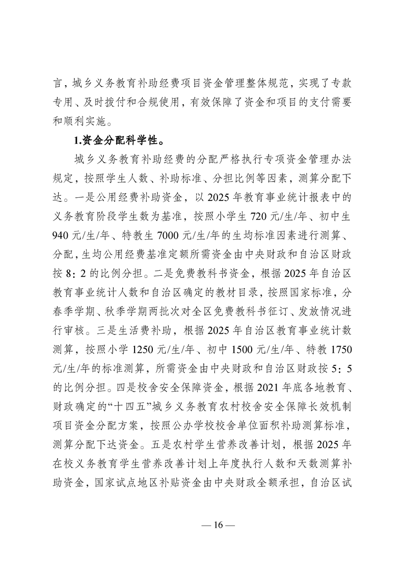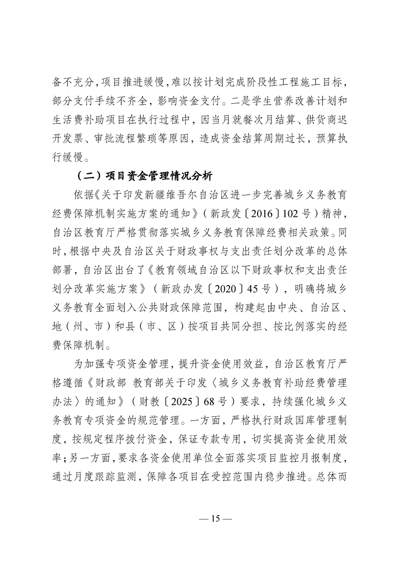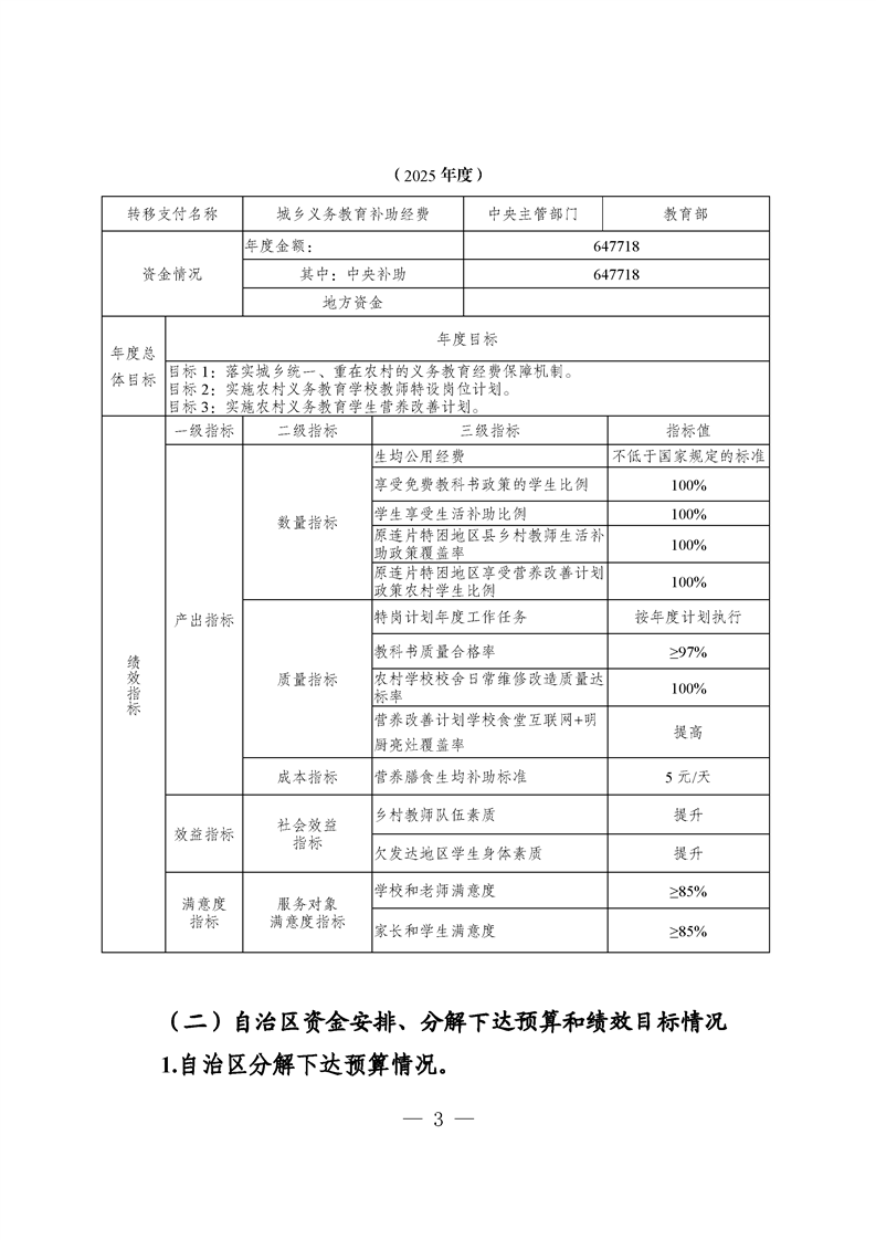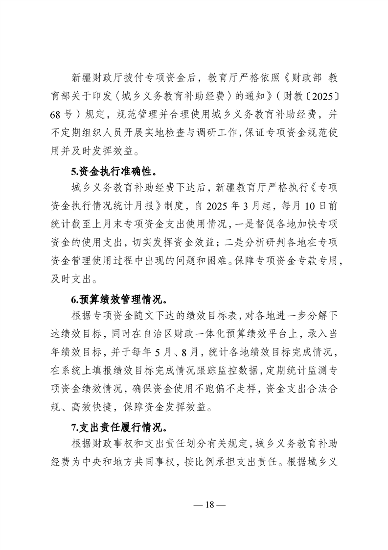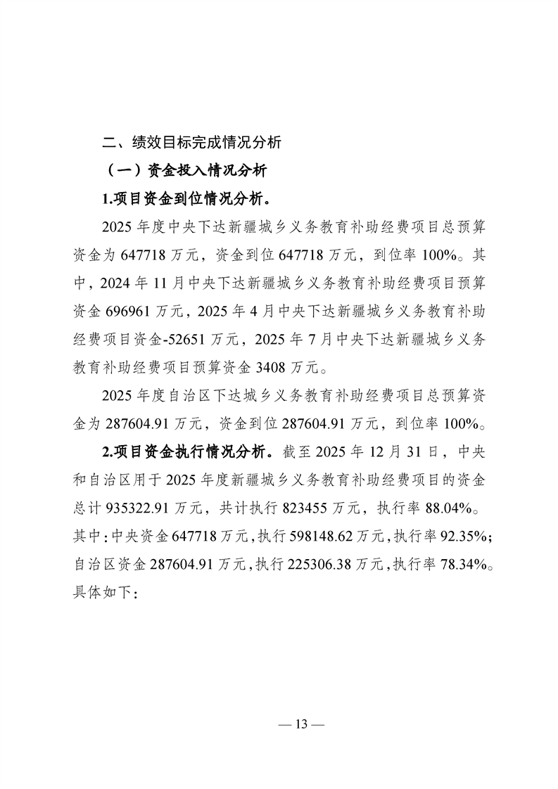 新疆维吾尔自治区城乡义务教育补助经费转移支付 2025 年度绩效自评报告
