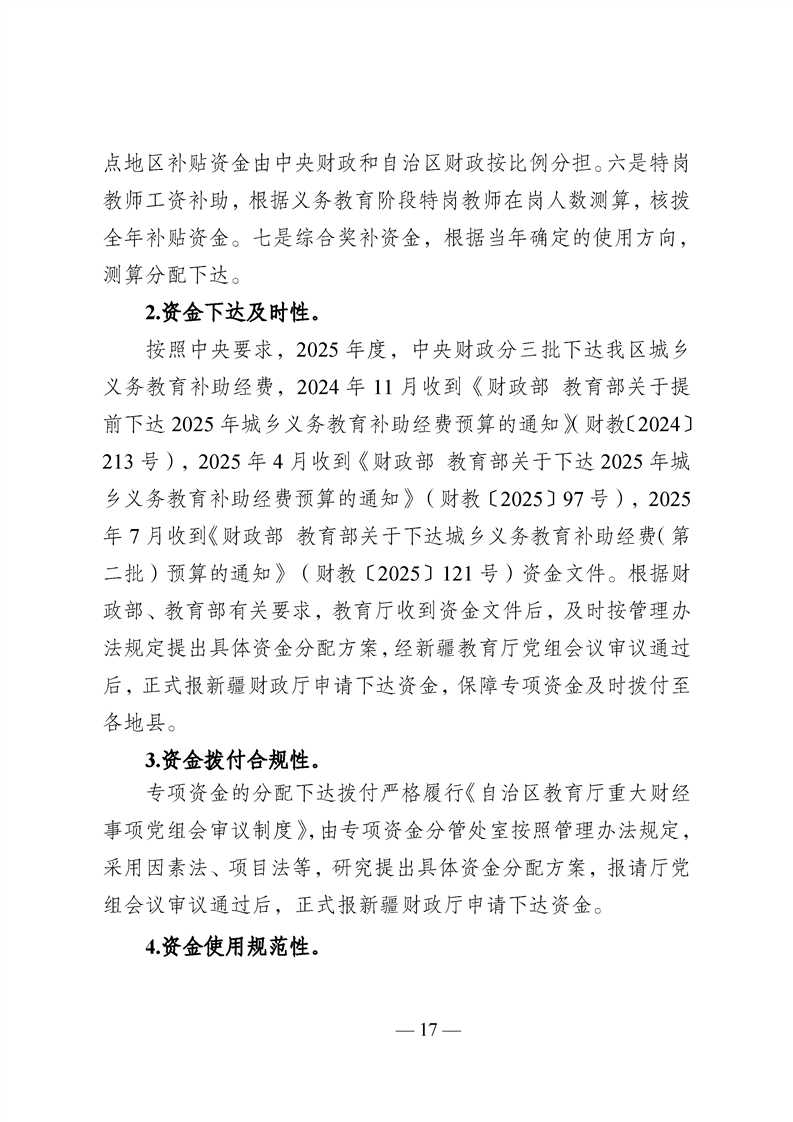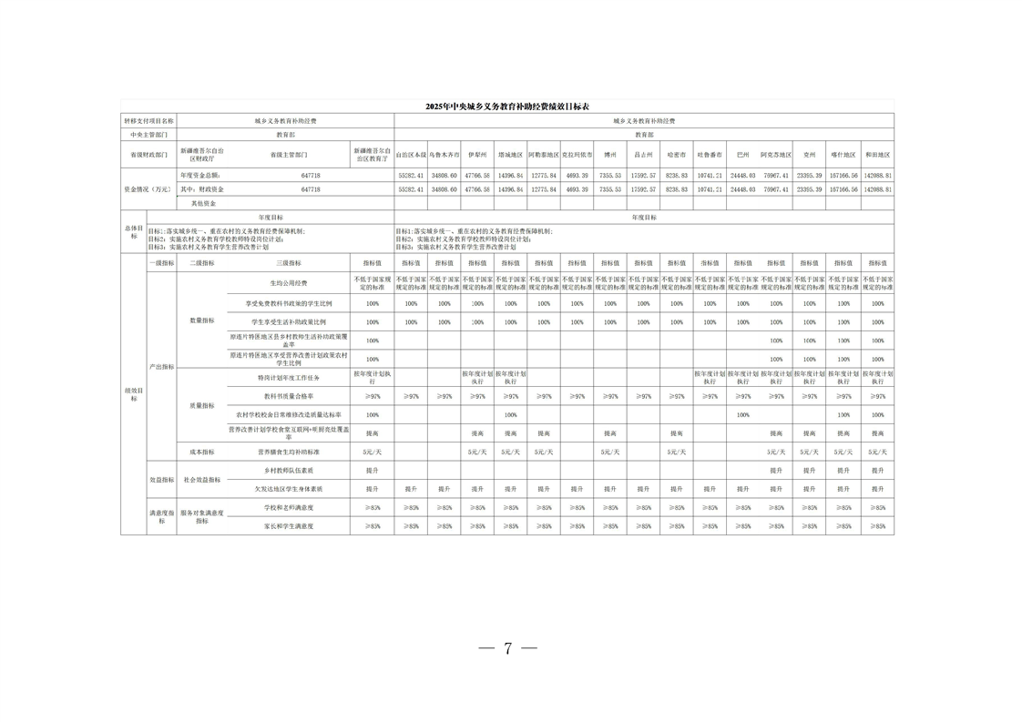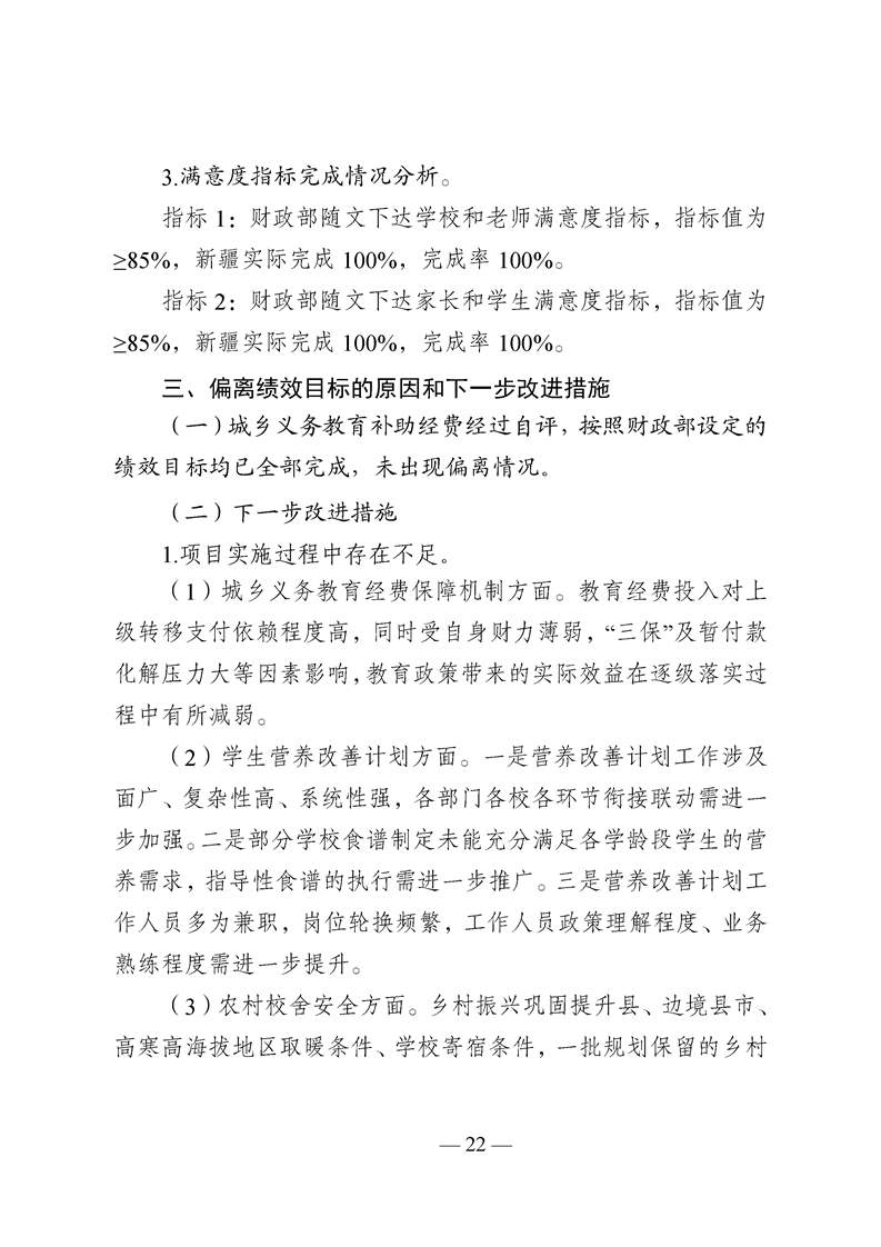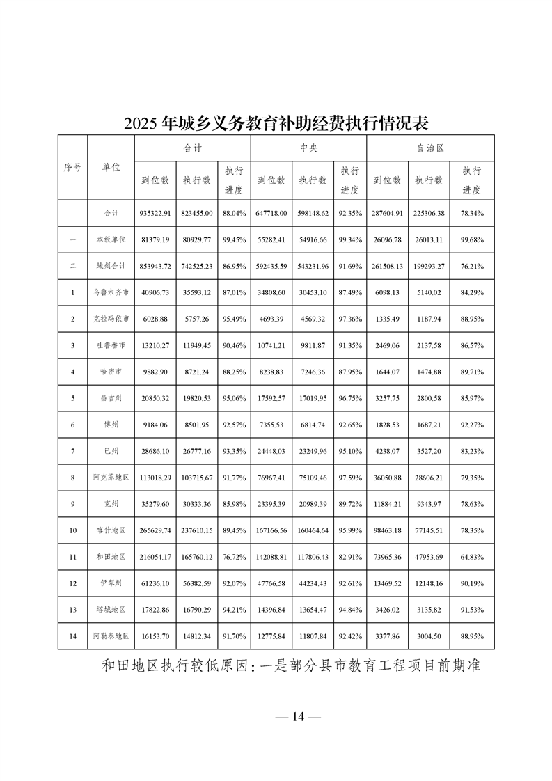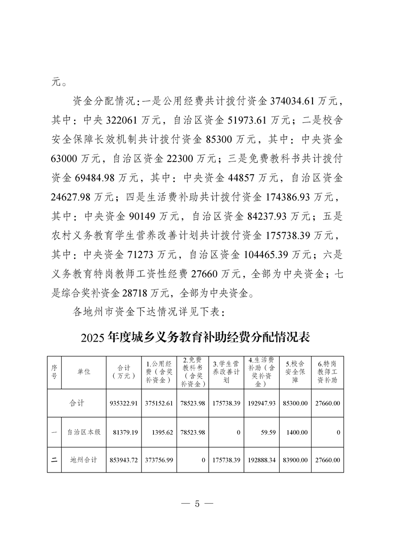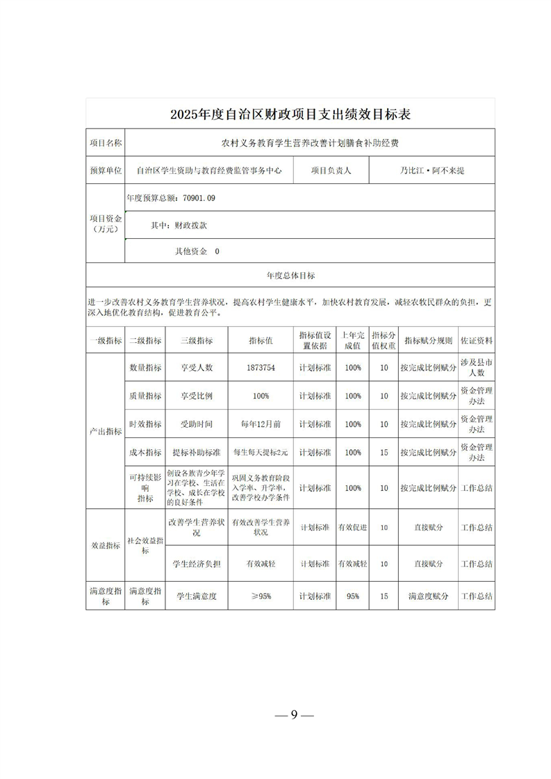 新疆维吾尔自治区城乡义务教育补助经费转移支付 2025 年度绩效自评报告