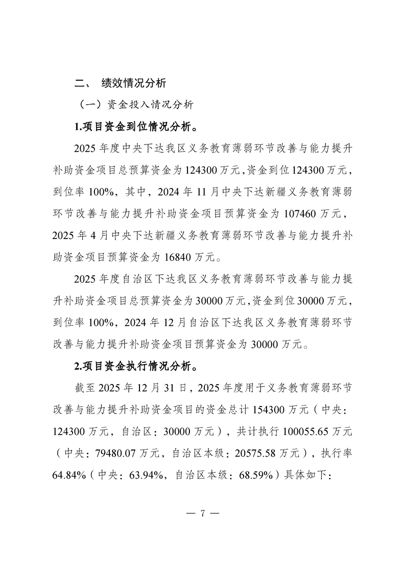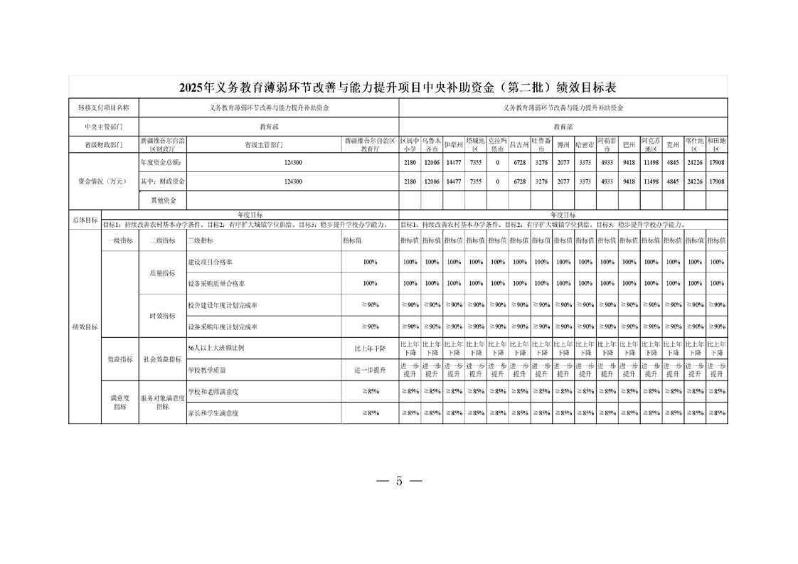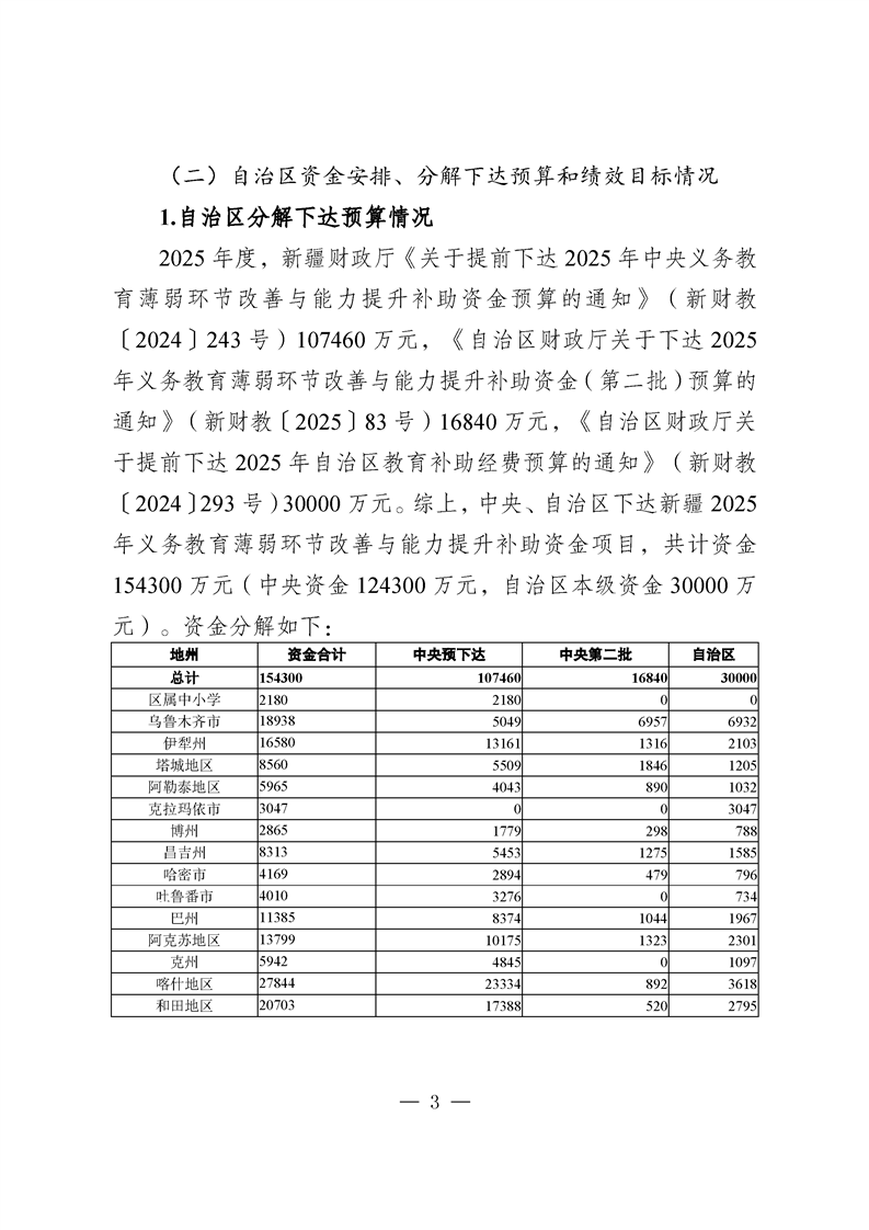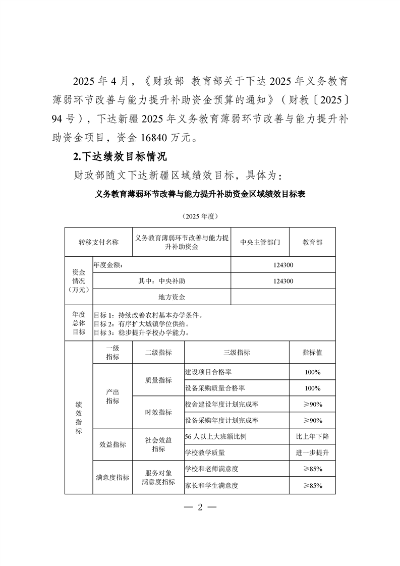 新疆维吾尔自治区义务教育薄弱环节改善与能力提升补助资金转移支付2025 年度绩效自评报告