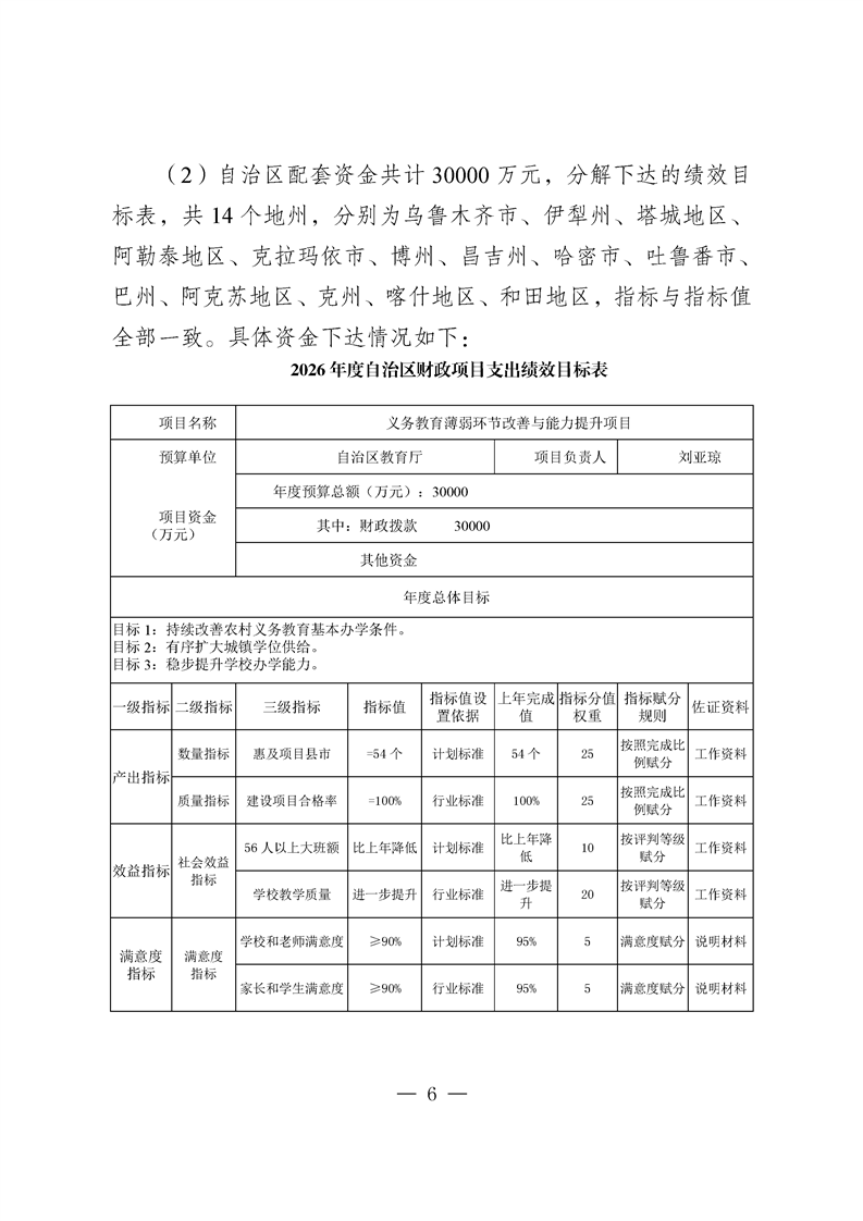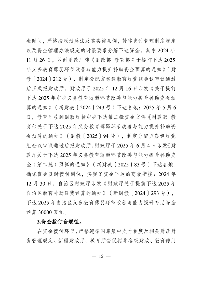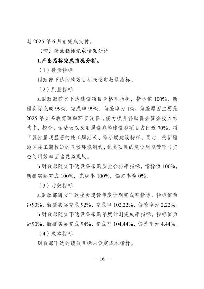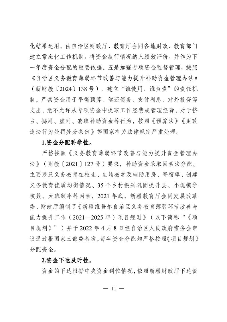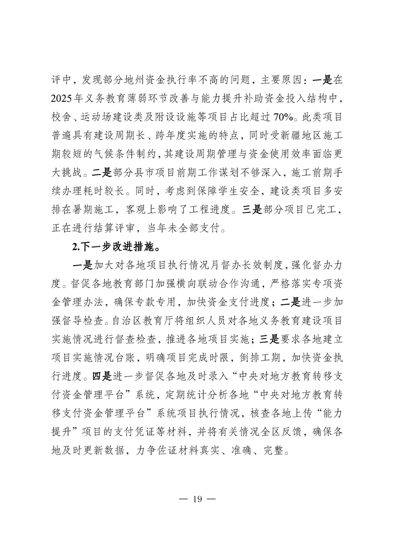 新疆维吾尔自治区义务教育薄弱环节改善与能力提升补助资金转移支付2025 年度绩效自评报告