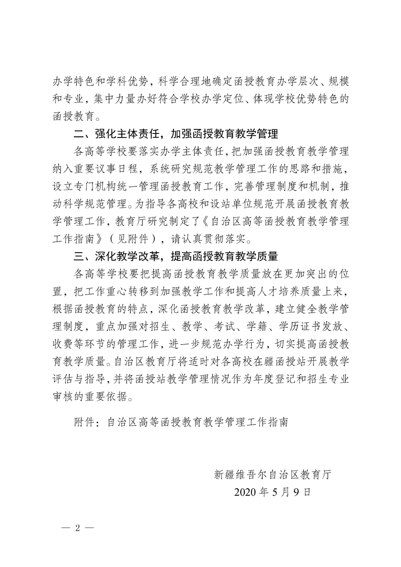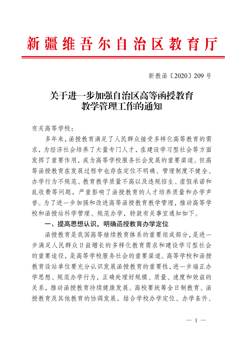标题:关于进一步加强自治区高等函授教育教学管理工作的通知