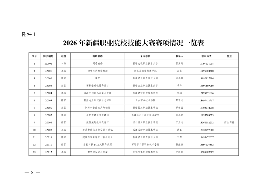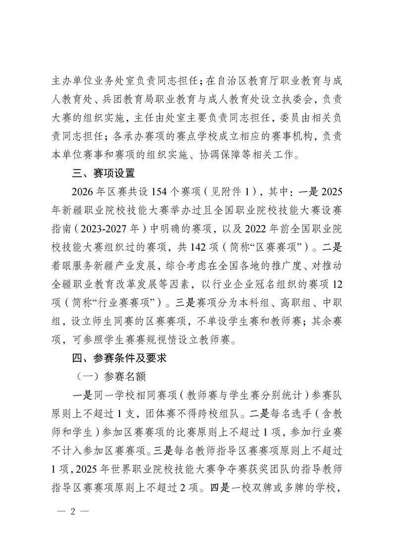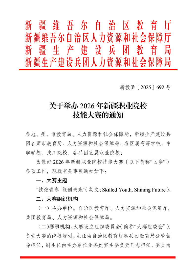 标题:关于举办2026年新疆职业院校技能大赛的通知