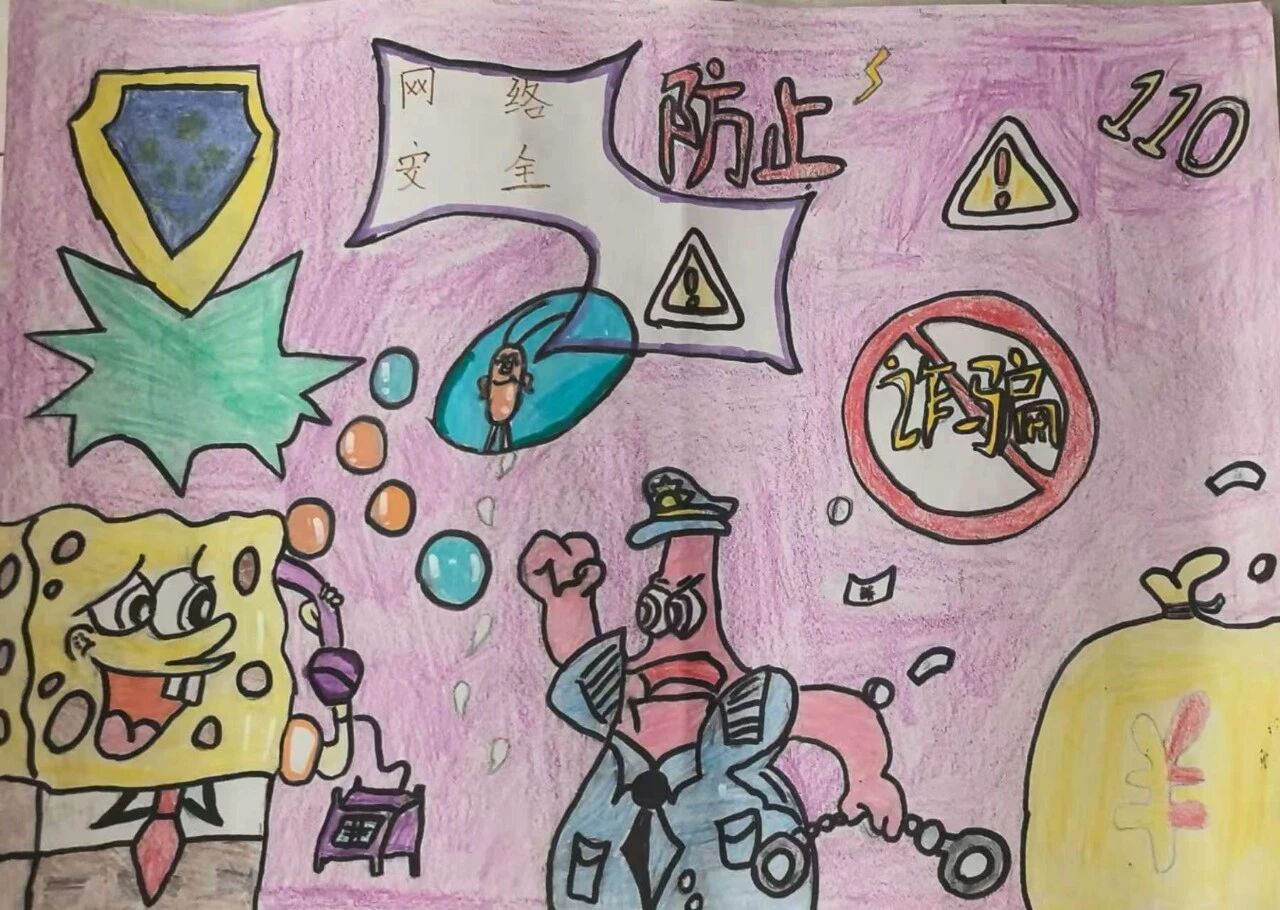 绘画作品展——《海绵宝宝的网络安全保卫战》托里县第四小学六年级一班